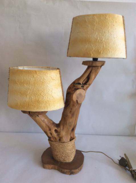 επιτραπέζιο φωτιστικό από ξύλο ελιάς και σχοινί ύψος 60 εκατοστά