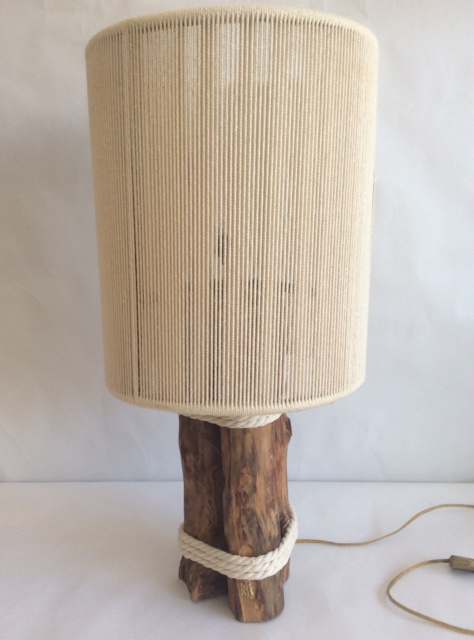 επιτραπέζιο φωτιστικό από ξύλο και σχοινί ύψος 59 εκατοστά