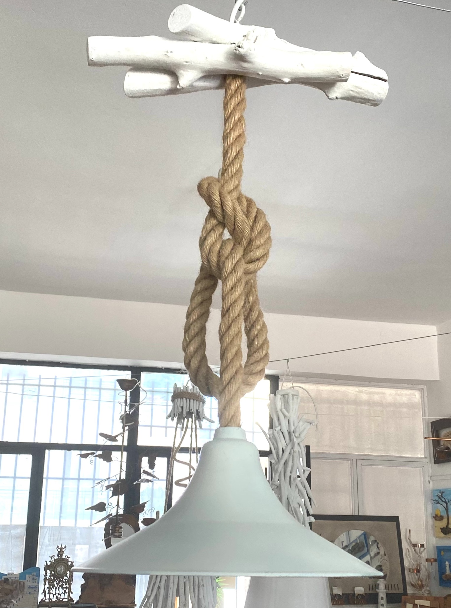 Φωτιστικο οροφής με θαλασσοξυλα,σκοινί καλώδιο,καπέλο αλουμίνιο με αυξομειούμενο ύψος.