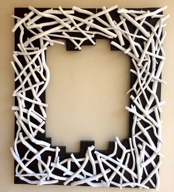 ξύλινος καθρέφτης με βαμμένα ξύλα μήκους 70 X 55 εκατοστών