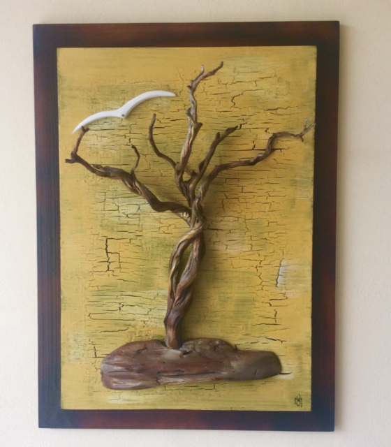 πίνακας με θάμνο και τεχνοτροπία κρακελέ