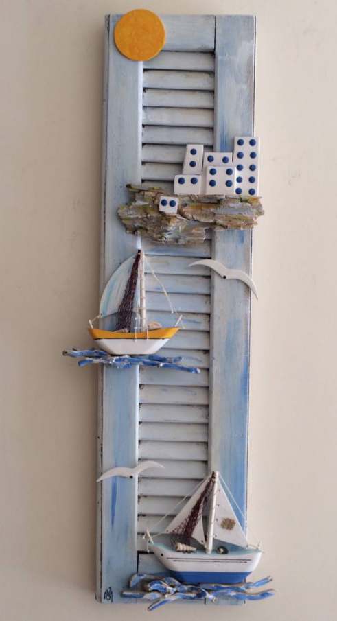 πίνακας παλιό παντζούρι 94 28 εκατοστά με θαλασσινά στοιχεία