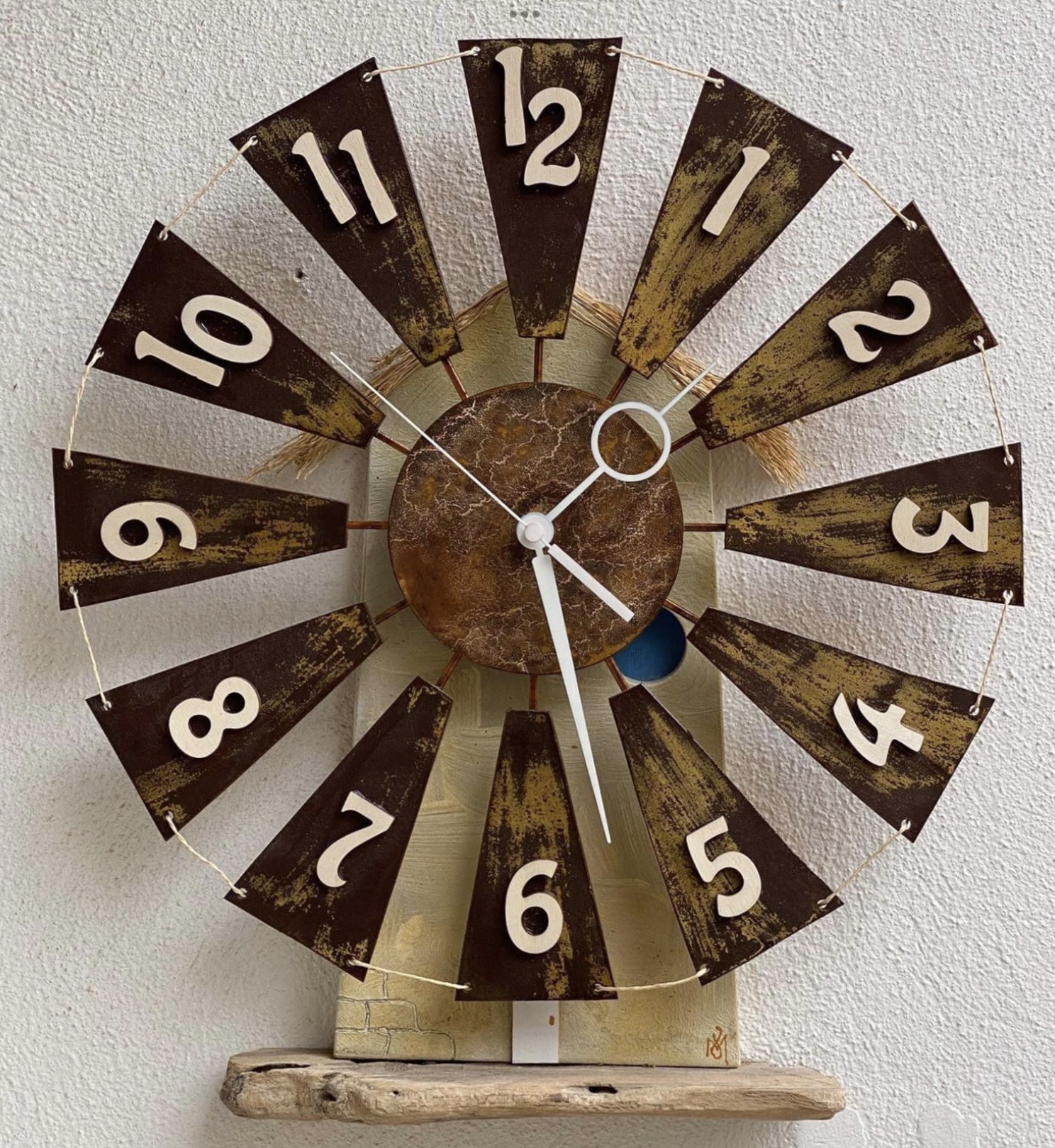 Ενα ιδιαίτερο χειροποίητο ξύλινο ρολόι τοίχου ύψους 50εκ.