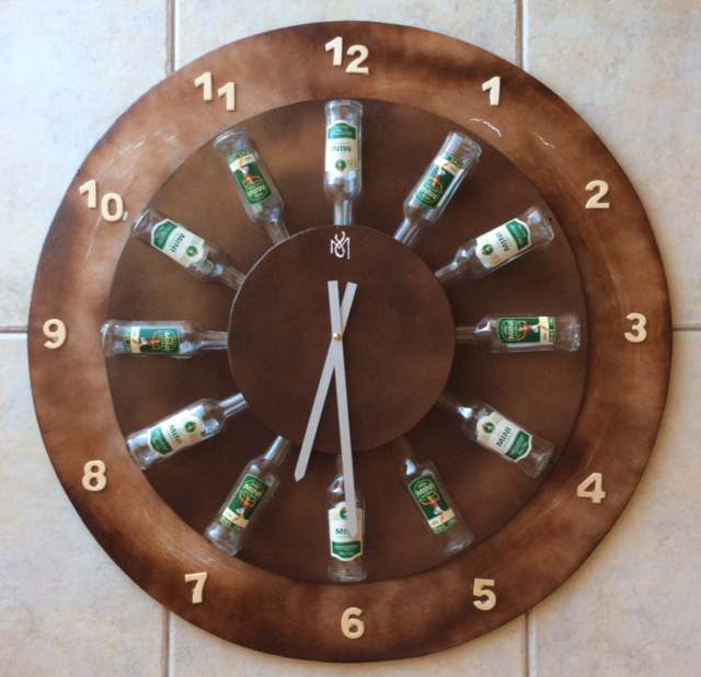 ρολόι τοίχου 50 εκατοστών φτιαγμένο από μπουκαλάκια ούζου