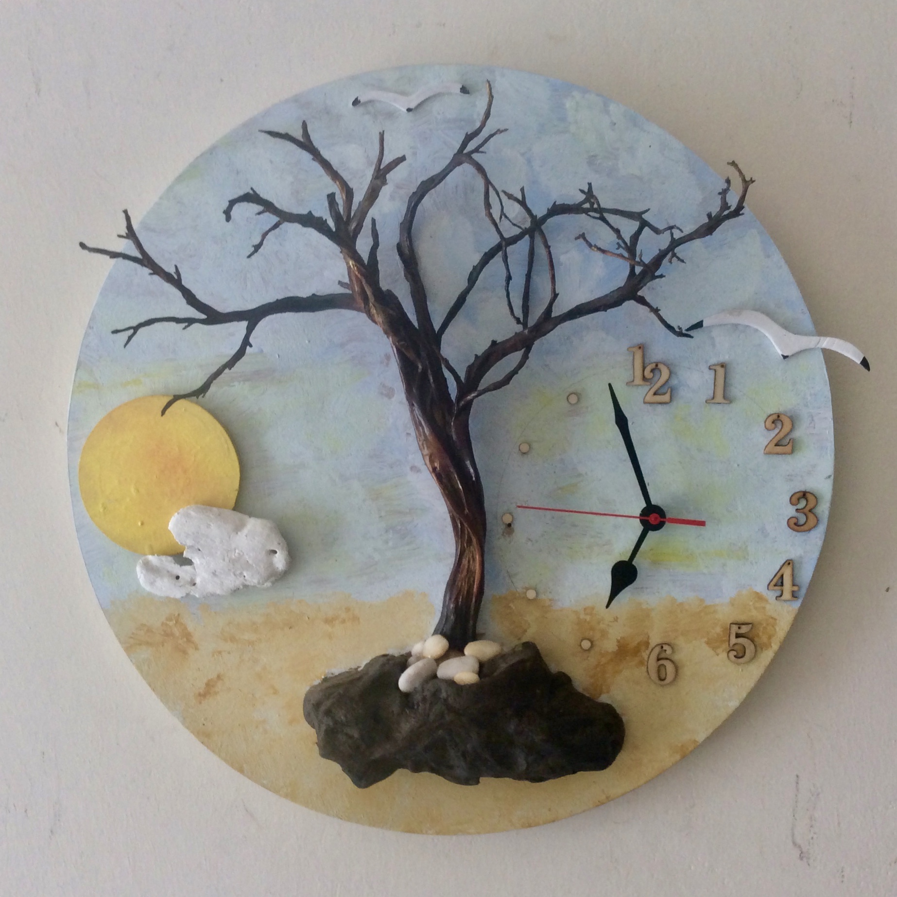 Στρογγυλό Ρολοι τοίχου 50εκ. με αποξηραμένο θάμνο και θαλασσοξυλα.