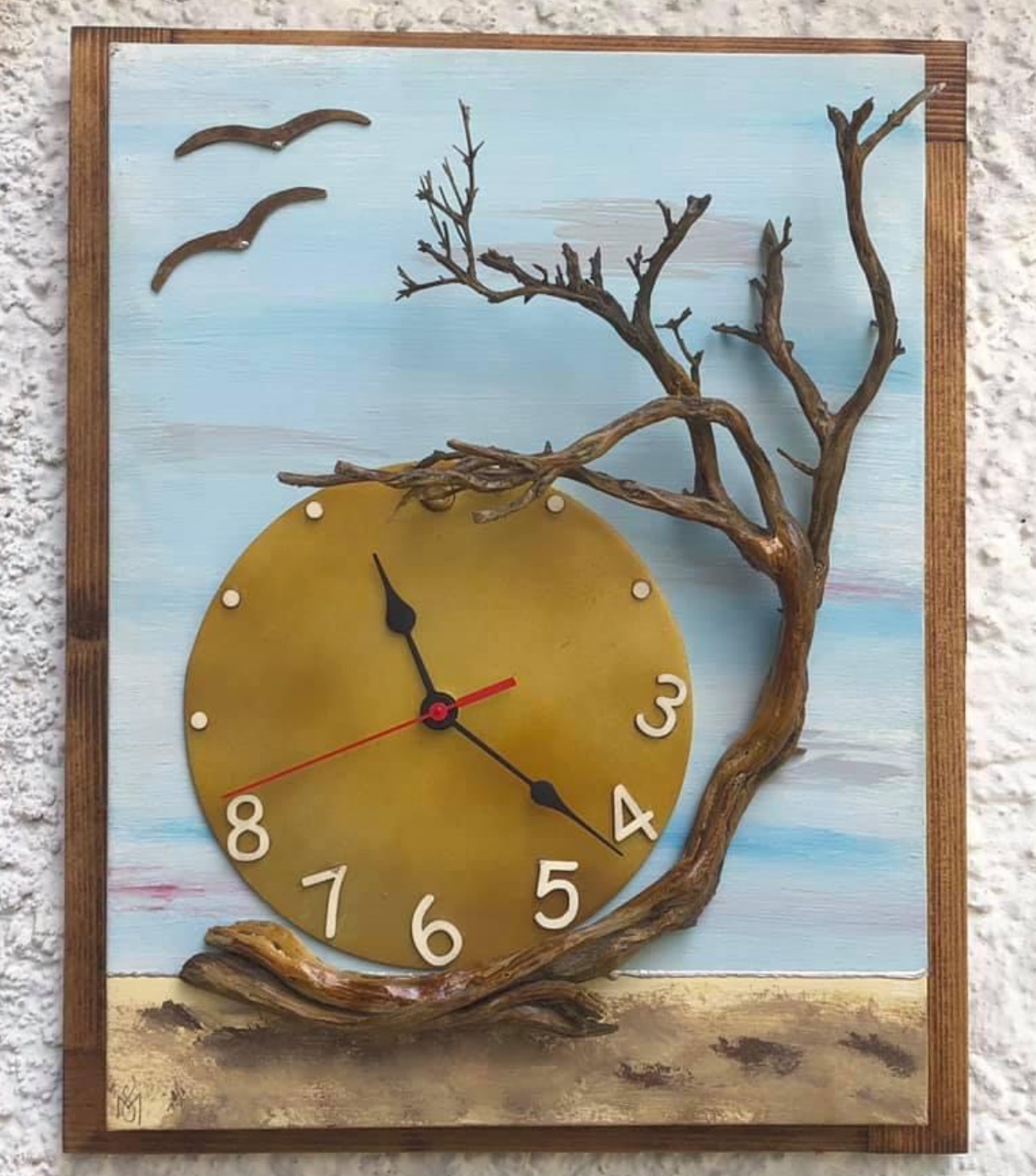 Χειροποίητος πίνακας Ρολοι 43Χ35 με αποξηραμένο θάμνο