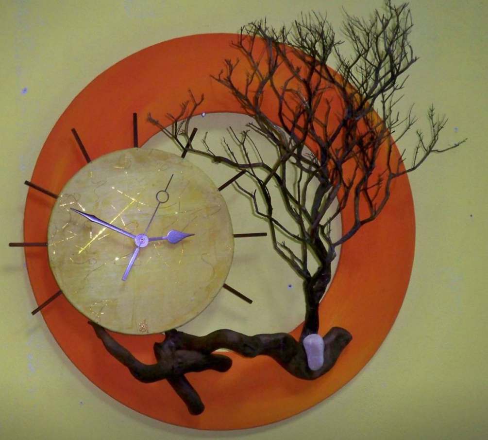 το δέντρο και ο ήλιος στρογγυλό ρολόι 50 εκατοστών με αποξηραμένο θάμνο